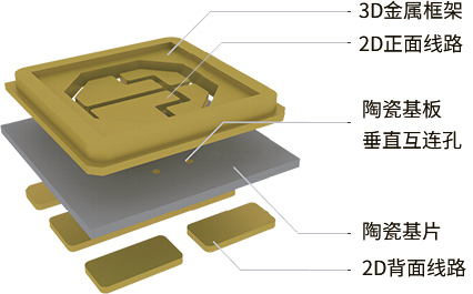 薄膜電路陶瓷封裝基板是一種通過磁控濺射薄膜金屬化與電鍍制程的技術:即根據應用需要,在高導熱的陶瓷基體上,采用薄膜金屬化及影像轉移方式制作2D金屬線路,然后采用TCV(Through Ceramic Via) 技術形成雙面布線間的垂直互連,最后采用堆疊技術獲得與陶瓷基體結合緊密的一體式3D金屬框架?;诒∧る娐饭に?,通過磁控濺射實現陶瓷表面金屬化,通過電鍍實現銅層和金成的厚度大于10微米以上即DPC(DirectPlateCopper-直接鍍銅基板)。